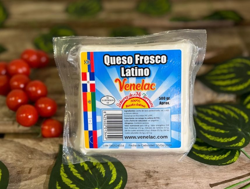 El sabor que une culturas. El Queso Fresco Latino es un queso blanco suave, de textura húmeda y ligeramente salado, perfecto para acompañar una gran variedad de platos típicos de América Latina. Ideal para desmenuzar sobre ensaladas, arepas, enchiladas, tostones o como relleno de empanadas.